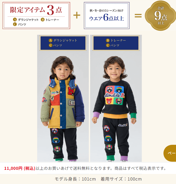 商品名ミキハウス3万円福袋(男の子、女の子、ダブルB)