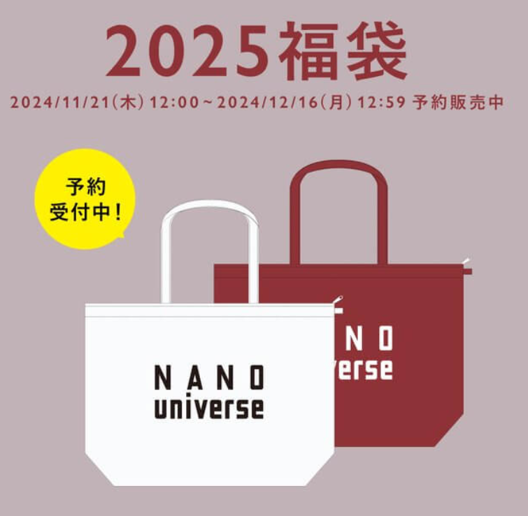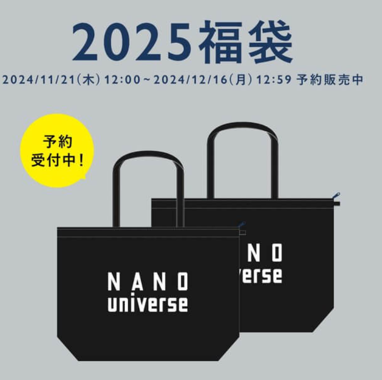ナノ・ユニバース2026福袋の予約開始は以下の通りです。